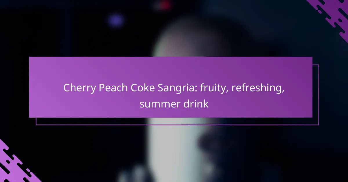 Cherry Peach Coke Sangria is a delightful summer drink that combines the sweetness of cherries and peaches with the fizz of Coke. This refreshing beverage is easy to prepare and perfect for gatherings or relaxing afternoons.
